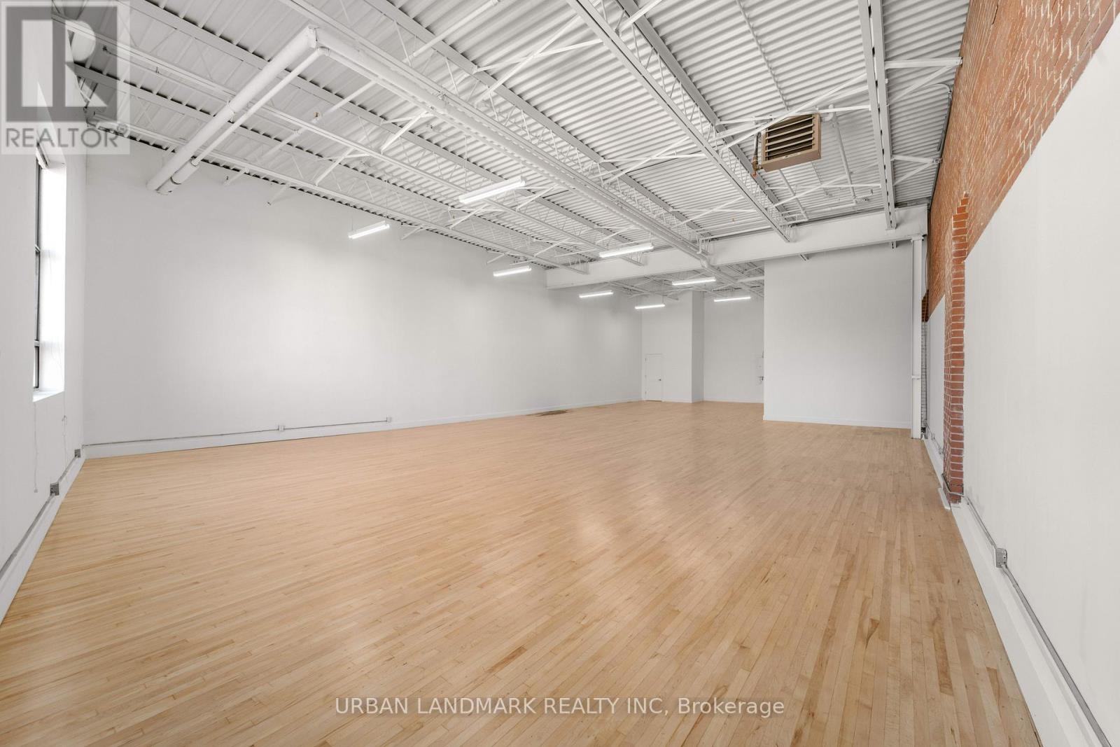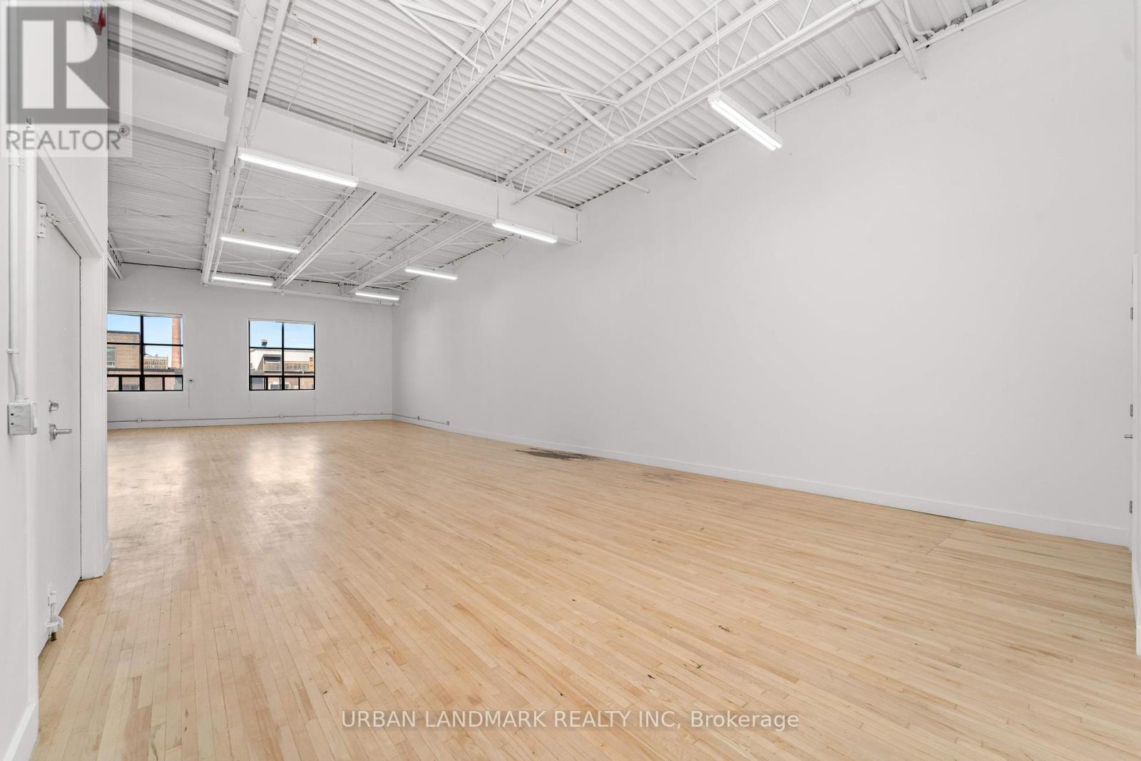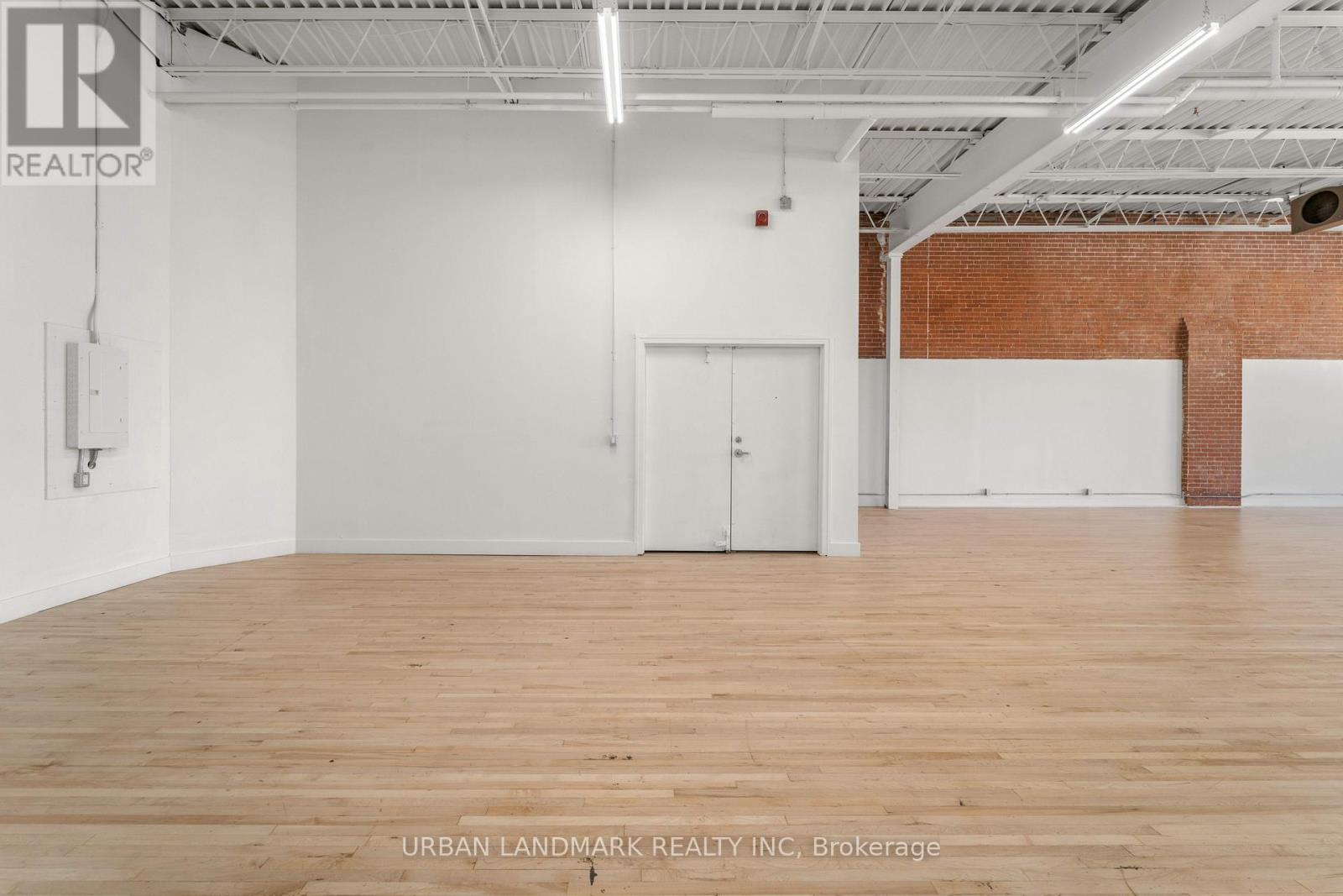 Spectacular brick & beam studio / office / flex space. Experience the true industrial creative feel with exposed steel ceiling and beams, exposed brick wall and large operable warehouse style windows with North exposure. Renovated open concept layout with 16-foot ceiling height, freshly refurbished hardwood floors, all new lighting, fresh paint throughout, new washroom with new fixtures and the new air-conditioning system will be installed prior to occupancy. Renovated common areas with new flooring, lighting, signage, indoor bicycle storage and security cameras. Tenants enjoy 24 hour 7 day a week access. Onsite property management office. Convenient access to multiple T.T.C. bus and streetcar routes, the Gardiner Expressway, Lakeshore Boulevard & The Don Valley Parkway. Parking available. The Neighbourhood, South Riverdale / Leslieville is home to many great restaurants, cafes, banks, shops, post office everything you need including office supplies (40942171)